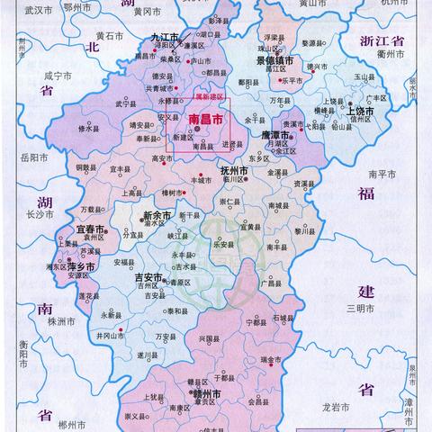 江西省下辖11个地级市,包括南昌、九江、上饶、景德镇等历史悠久的城市,还有8个县级市和多个县区,这些城市在地图上的位置清晰可见,为我们提供了详细的地理信息。