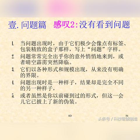 摘要:本报告为最新8D报告范文,详细介绍了解决问题的八个步骤。从确定问题及其影响开始,通过组建专项团队、制定并描述问题解决方案,到确定并实施根本原因分析和纠正措施,最终验证并确认问题的解决,确保问题不再发生。报告旨在提高问题解决效率,促进质量改进。