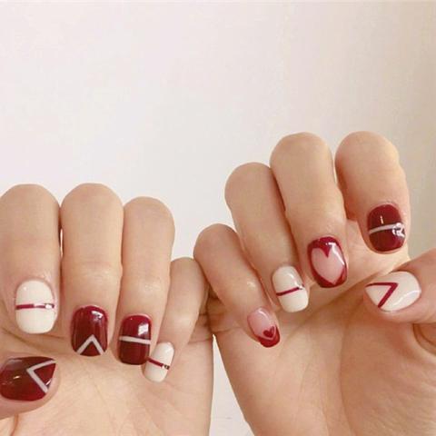 以下是几款最新的红色指甲款式图片: